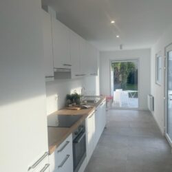 Deze woning onderging een grondige renovatie en is voorzien van alle nieuwe technieken, isolatie, ventilatie, ramen, elektriciteit, sanitair, ingerichte ruime keuken en badkamer met ligbad en douche, …